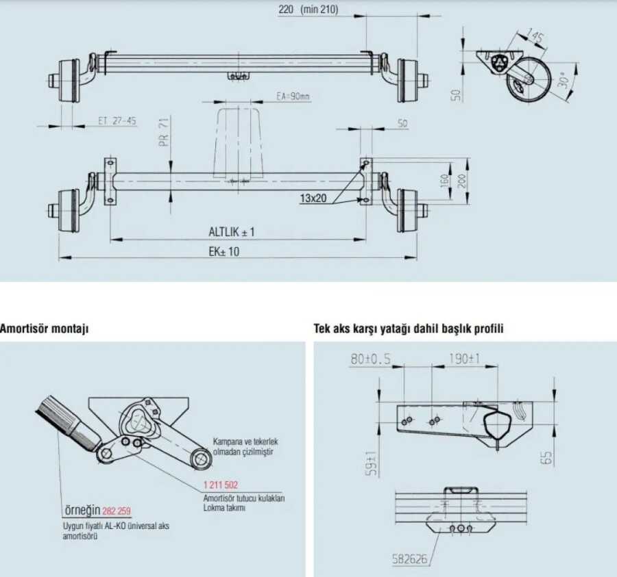 Al-Ko 1000Kg 1400mm Torsiyonlu Frenli Aks Dingil Seti