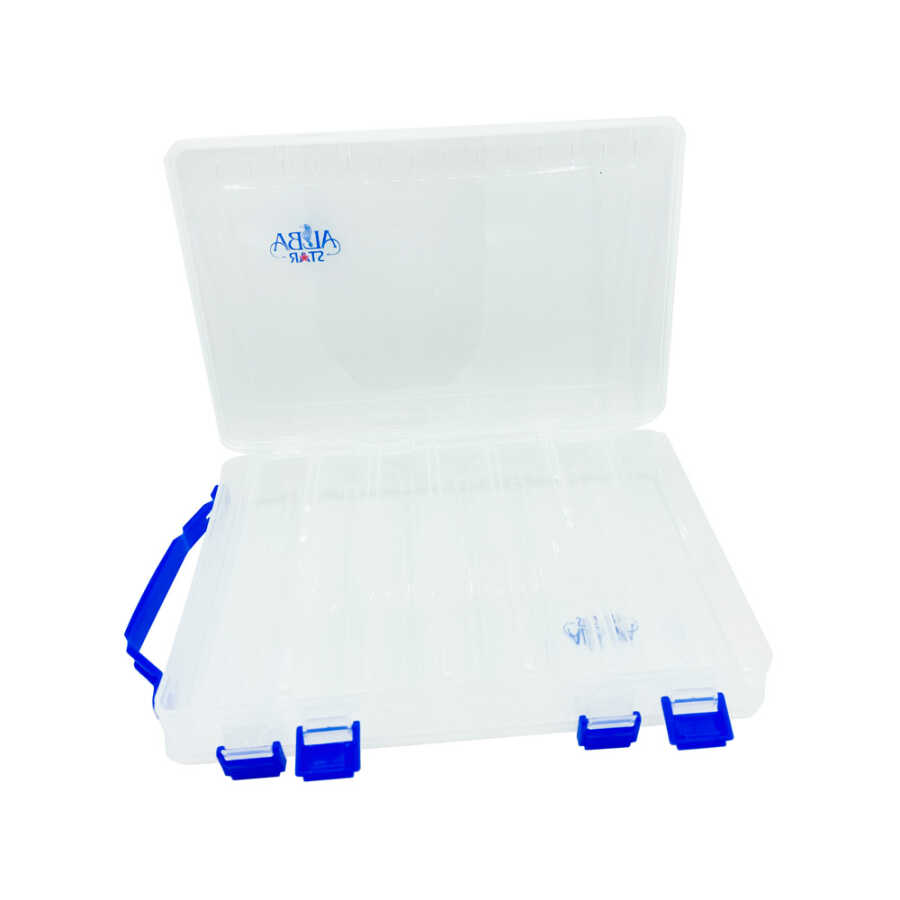 Albastar Çift Taraflı Sahte Balık Kutusu, ihtiyaçlarını karşılayabilecek tüm özelliklere sahiptir. İki tarafı açılabilir kapaklıdır. 7x2 toplam 14 adet gözü, üst kısmında taşıma askısı ve hızlı kuruma için su oluğuna sahiptir.