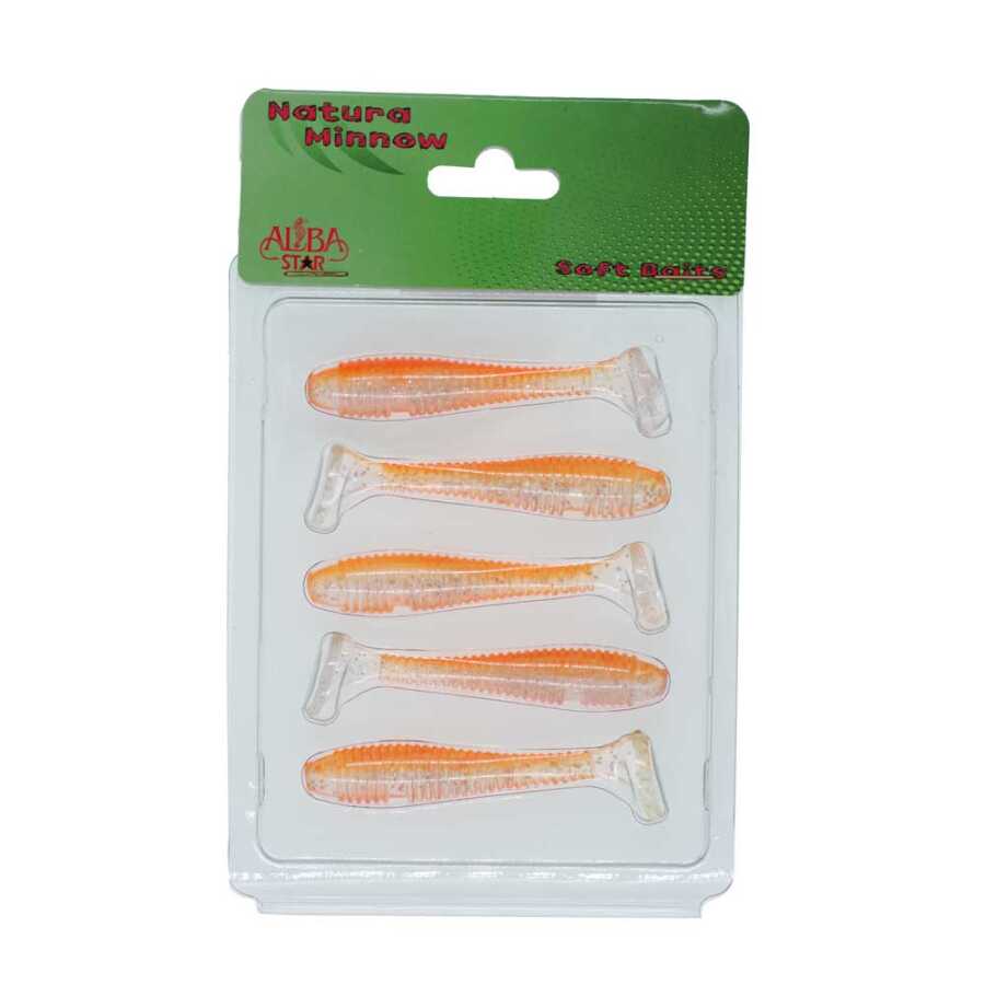 Albastar Natura Minnow silikon sahte balığı başından kuyruğuna kadar en iyi kaliteye sahiptir. Albastar Natura Minnow silikon sahteleri seviye gerektirmeden herkes tarafından, her türlü suda ve her türde balığa kullanılabilecek bir sahte yemdir. Albastar Natura Minnow esnek ve tırtıklı yapısı, kuyruk aksiyonu suda avcı balıkların dikkatini çabuk çeker ve etkili sonuçlar verir.
