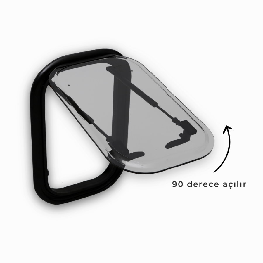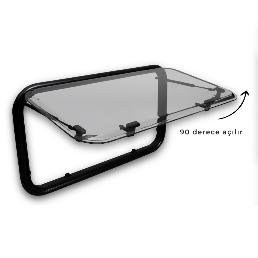 Babarvy karavan penceresi, 90 derecelik bir açılma kapasitesine sahip olan amortisörlü bir mekanizma ile donatılmıştır.