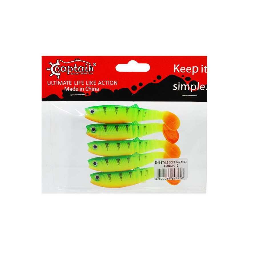 Captain 3569 Style Soft 8cm Levrek Silikonu 5'li Paket Suni Yem