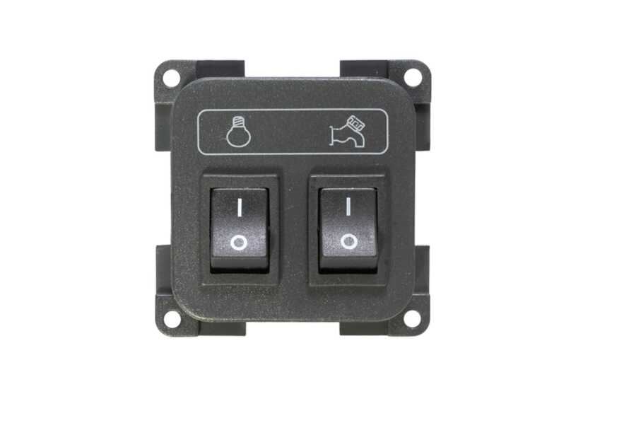 Bu anahtar sistemi genellikle karavan mutfak veya giriş panelinde kullanılır. Bir anahtar su pompasını açıp kapatırken diğer anahtar iç veya dış aydınlatma devresini kontrol eder. Böylece su sistemi ve aydınlatma tek bir noktadan kolayca yönetilebilir.