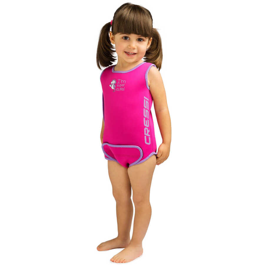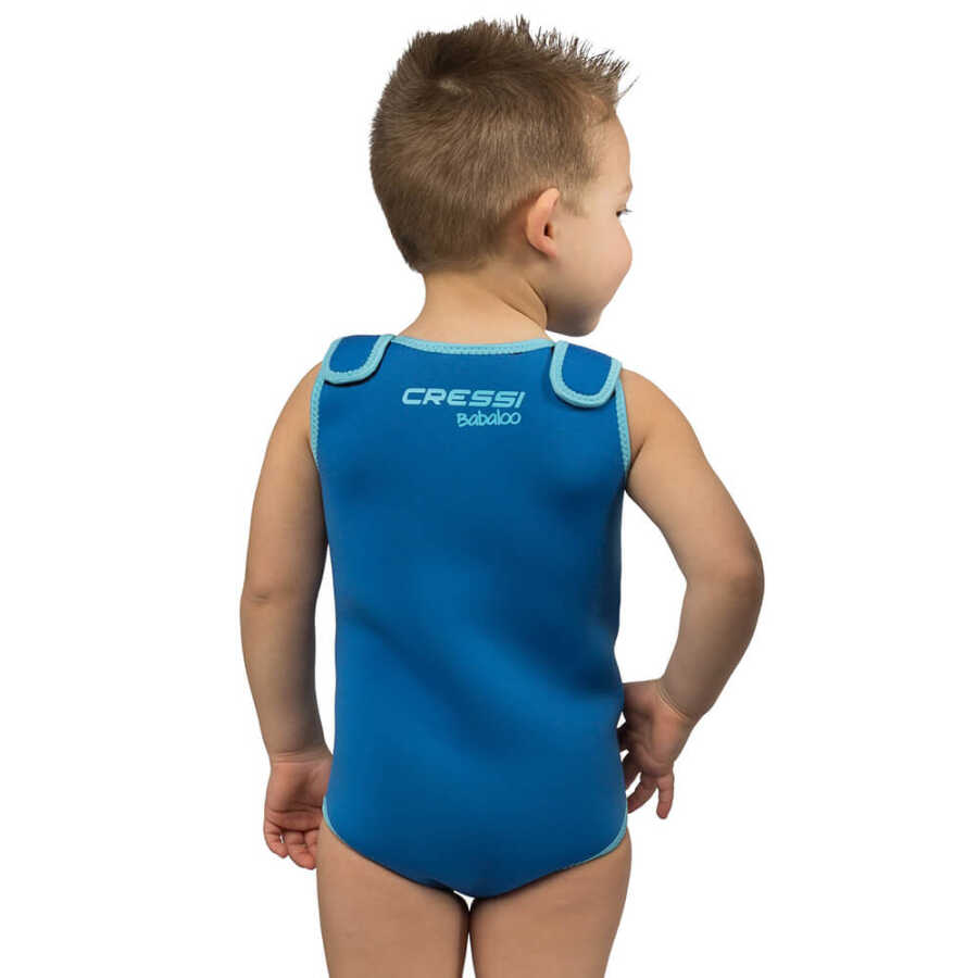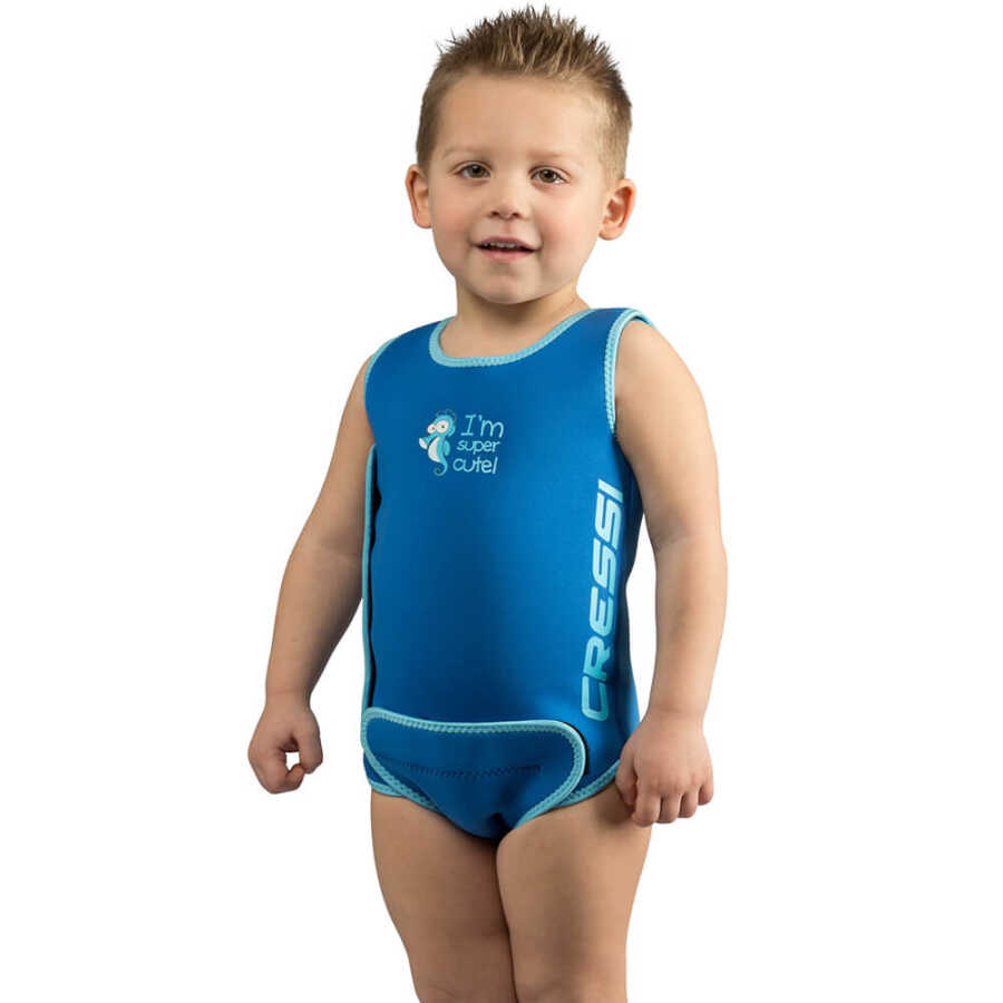 Cressi Babaloo bebek ısı koruyucu elbise, güneşten ve vücut ısısını koruyan neopren ile yapılmıştır.