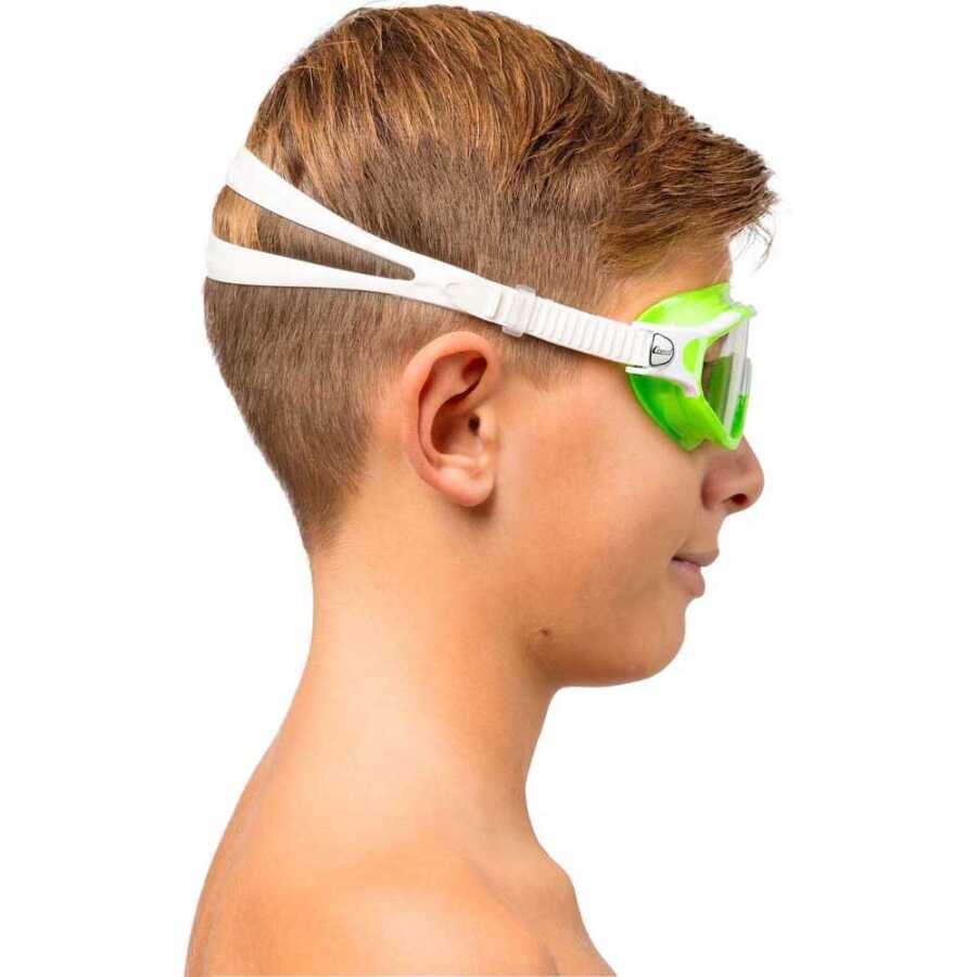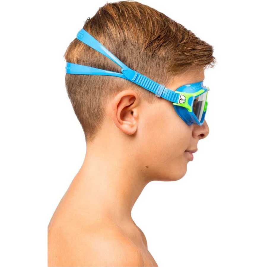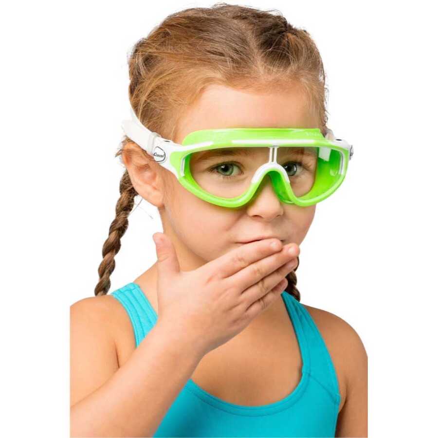 Bu küçük boyutlu tek cam gözlük, mükemmel su sızdırmazlığını korurken herhangi bir aktiviteye ve aynı zamanda oynamaya izin vermek üzre çocuklar için özel olarak tasarlanmıştır. Gözlük yapısındaki küçültülmüş dış çerçeve yüzdeki dengeyi ve kavrama kapasitesini arttırmaktadır.