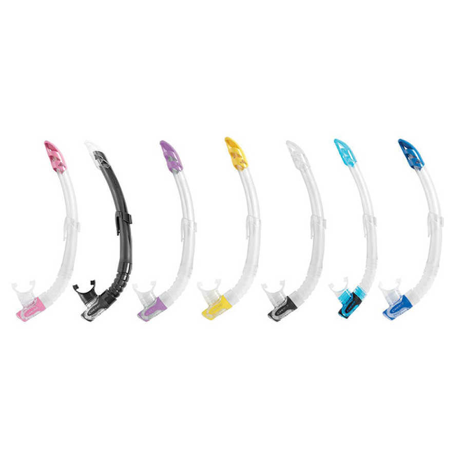 Ayarlanabilir bağlantı: Mükemmel konumlandırma için şnorkel deliği boyunca uzanan maske kayışına hızlı bağlantı sistemi