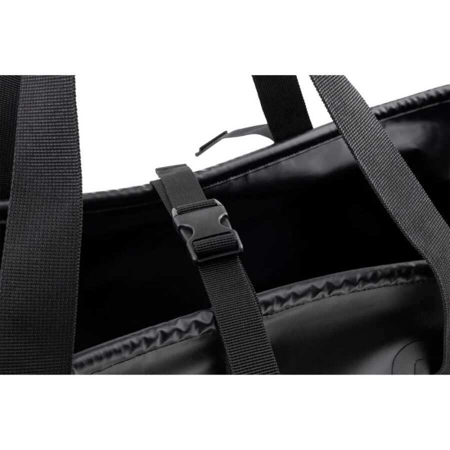 Su geçirmez tarpaulin (branda) malzeme, tuz, kum, UV ve zorlu dış koşullara karşı yüksek dayanıklılık sunar. Üst kısmın katlanıp klips ile kapatılması (roll-top + heavy-duty buckle) sayesinde taşıma sırasında sızdırmaz bir yapı elde edilir.