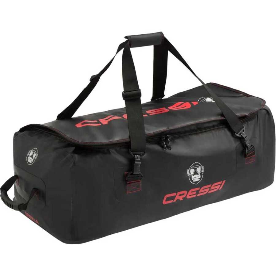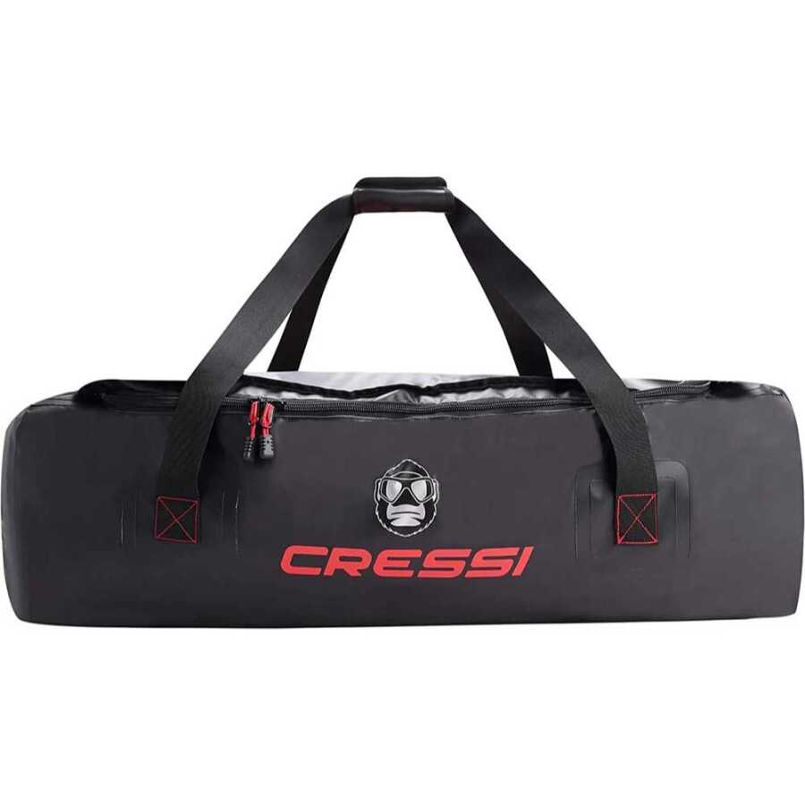 Cressi Gorilla XL Su Geçirmez Dalış Çantası, büyük ve ferah bir çanta, bol miktarda saklama alanı, (135 litre) dahili kapasiteye sahiptir. Çanta, uzun serbest dalış paletlerini bile tutacak kadar uzundur. Güçlü bir radyo frekansı (rf) kaynaklı dikiş PVC'den yapılmıştır ve su geçirmezdir. Ekipman, çantanın içindeyken su ile yıkanabilir. Ekipmanınızı yıkamayı bitirdiğinizde, çantanın bir ucunda özel bir tahliye başlığı bulunur ve böylece su kolayca ve rahat bir şekilde dışarı atılır. Kullanışlı üst tutma kolları ve omuz askısı olarak da kullanılabilen iki askı ile birlikte gelir. Araba ile bile taşınırken su çıkmaz.