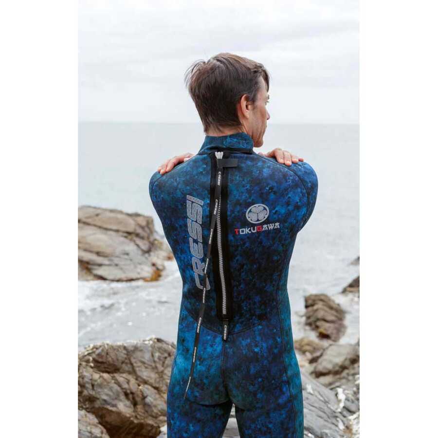Adını Japon feudal shogunate alan Tokugawa, mükemmel bir şekilde zıpkınla balık avı, serbest dalış, yüzme ve havuz antrenmanları için uygun tek parça, 3 mm kalınlığında bir dalış elbisesidir. Bu dalış elbisesinin benzersiz kamuflajı, Karayip Denizi'nin mavi sularından Kuzey Amerika sularının daha yeşil tonlarına kadar farklı sualtı ortamlarına uygundur. Dalış elbisesinin grafikleri, tüm ortamlar için en iyi kamuflajı sağlar. Tokugawa, elastik, esnek, rahat ve yumuşak neoprenden yapılmış olup, Cressi dalış elbiselerine özgü anatonomik kesime sahiptir; ön şekillendirilmiş kollar ve bacaklar, su içinde giyim kolaylığı ve hareket kabiliyetini artırır. Göğüs ve diz koruma takviyeleri özellikle zıpkınla balık avı için tasarlanmıştır. Dura stretch naylon astar, dalış elbisesinin esnekliğini, konforunu ve dayanıklılığını artırır.