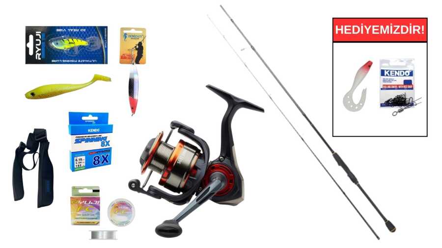 Neden Bu Seti Seçmelisiniz? Setin en büyük avantajı, tüm teknik kurulumun sizin için yapılmış olmasıdır. Kendo 8X örgü ipiniz makineye spooled (sarılmış) ve Ryuji %100 Fluoro Carbon leader bağlantısı profesyonelce yapılmış olarak gönderilir. Kutudan çıkardığınız anda sahtenizi takıp ava başlayabilirsiniz.