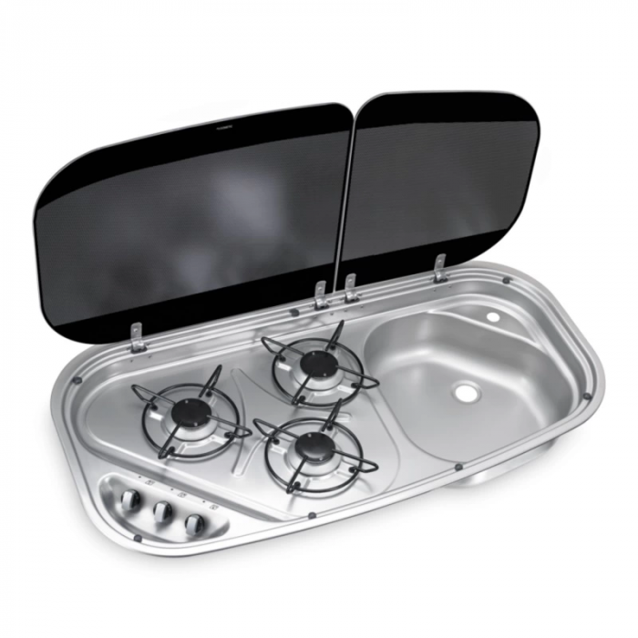 Dometic HSG Serisi Ocak–Eviye Kombinasyonu, cam kapaklı kompakt tasarımı sayesinde en küçük mutfak alanlarında bile tam fonksiyonlu pişirme ve yıkama imkânı sunan yer tasarruflu bir çözümdür. Karavan ve mobil mutfak uygulamaları için geliştirilmiştir.