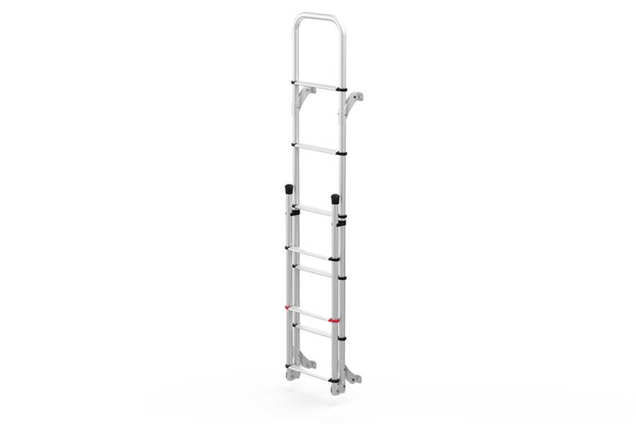 Sprinter ve Crafter araçlara özel merdivenler içindir. Tüm modeller için tek bir ana taşıyıcı yapı kullanılır; her araç tipine özel sabitleme barları ayrıca satın alınabilir.