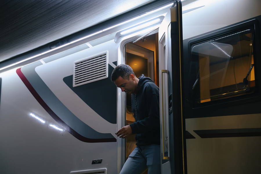 Yağmur suyunun kapı üzerinden akmasını önlemek için kanal formunda terminallere sahip harici kapı lambası.