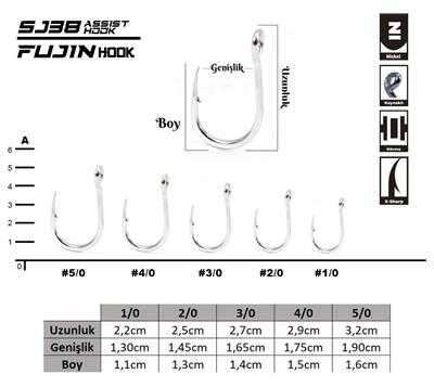 Yeni Fujin SJ38 Delikli Kaynaklı Assist Kancası, Jigleriniz için harika bir kanca seçimi olacak. Jig avcılığının olmazsa olmazı asist kancalar çok önemlidir. Özellikle hedef balığınıza göre doğru iğne seçimi yapmak gerekir. Kıyıdan Shore Jig yapanlar için özellikle kancanın açılmaması ve darbelere dayanıklı sağlam bir yapıda olmalı. Fujinin fiyat performans ürünlerinden olan yeni kancası, delik kısmında ki kaynak sayesinde açılmaları veya delik kısmından kırılmaların önüne geçmek için özel olarak tasarlandı.