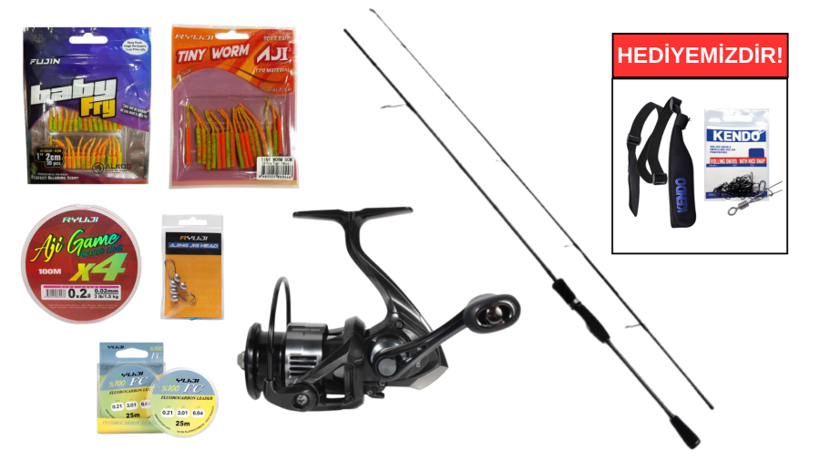 Yem Paketi: Fujin Baby Fry (2cm) ve Ryuji Tiny Worm (5cm) silikonları + Özel Ajing Jigheadler.