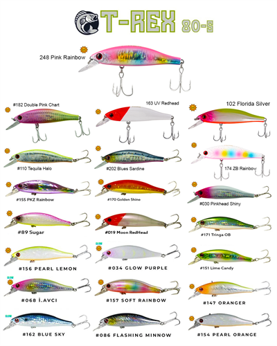 Fujin T-Rex 80S 11gr 80mm Maket Balık, Derin sayılabilecek bölgelerde spin avı yaparak levrek, lüfer, palamut, lambuka ve diğer tüm avcı balıkların avında kullanmak için tasarlanmış çok başarılı bir maket balıktır.