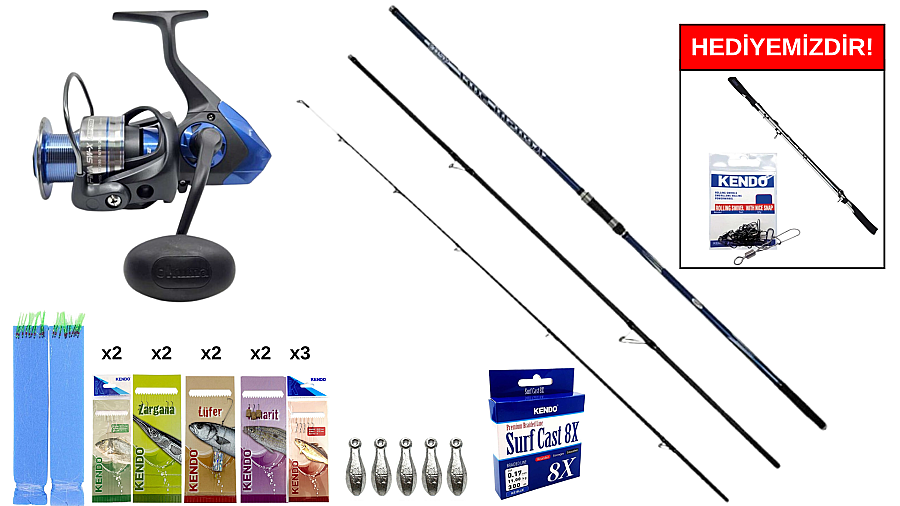 Kendo Kenshi Surf 4.20cm (120-260gr): Surf disiplininin en karakteristik kamışlarından biri olan Kenshi, 260 grama kadar yükleme kapasitesiyle tam bir "mesafe makinesi"dir. Özellikle Boğaz'ın sert akıntılarında ağır kurşunları kararlılıkla taşır ve vuruş anında balığı hızla tasmalamanıza yardımcı olur.