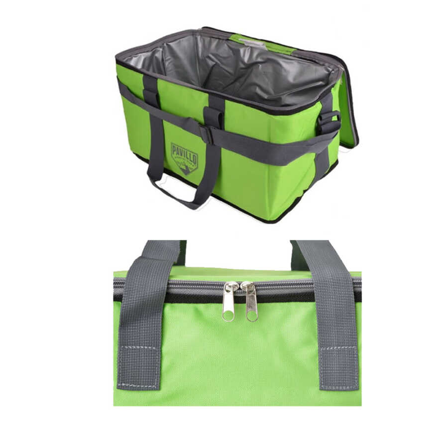 * Ölçüler: 19cm x 35cm x 20cm (7.5” x 13,8” x 7,9”) * Kumaş: %100 polyester (600D) *Yaklaşık 5 saat ısı yalıtımı * 15 L kapasite * Su Geçirmez PEVA astar