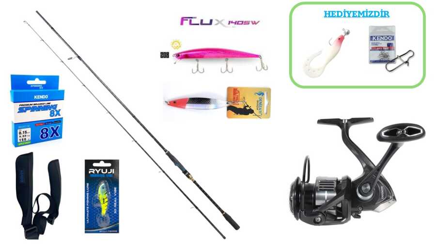 Kutu içerisinden çıktığı anda kullanıma hazır olan set, Kendo Spinning 8X Fighting 150 m Apple Green örgü ip makineye önceden sarılı şekilde gelir. Kamış koruma kılıfı, sahte yemler ve jig içerikleriyle eksiksiz bir spin deneyimi sunar.