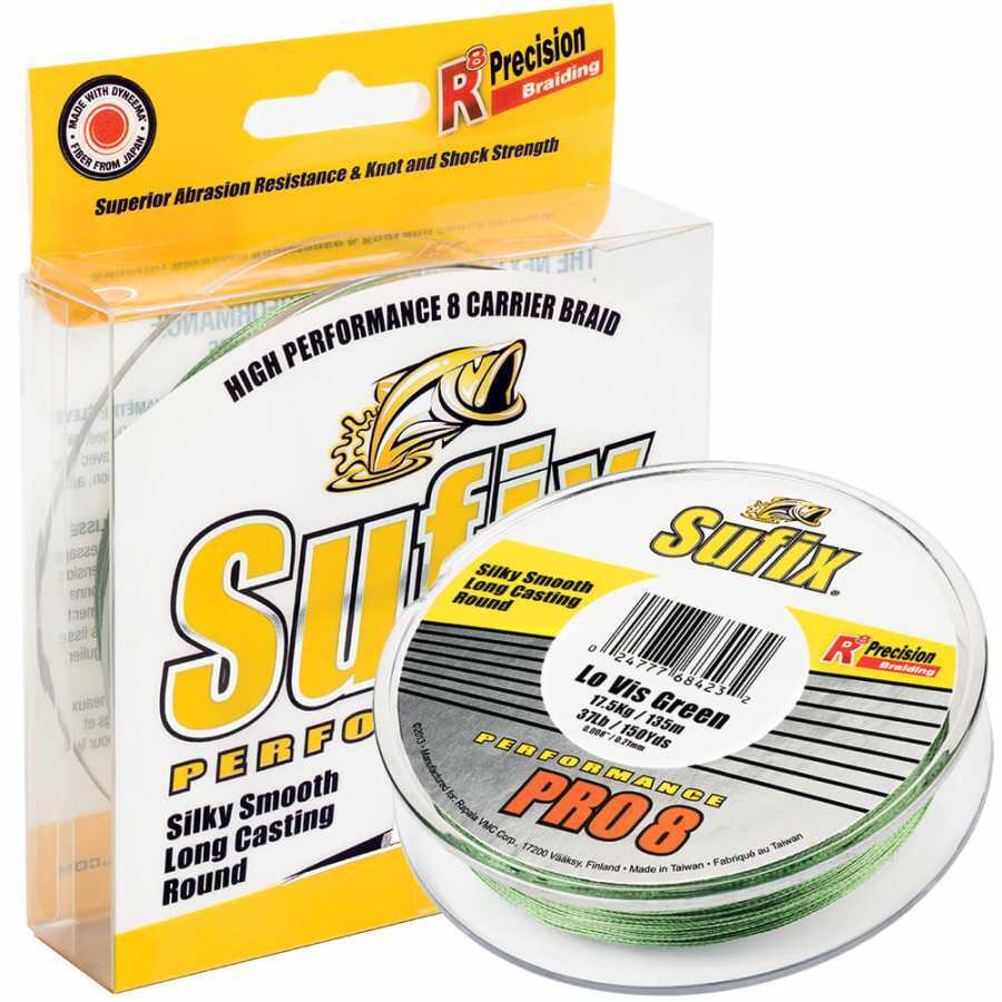 Sufix Performance Pro8 hem spin hem de çıkrık makineleri için tasarlanmıştır. Küçük yemler, hafif yumuşak plastikler (jigging), levrek, alabalık, gökkuşağı alabalığı ve incelikli balık avı için mükemmel bir seçenektir.