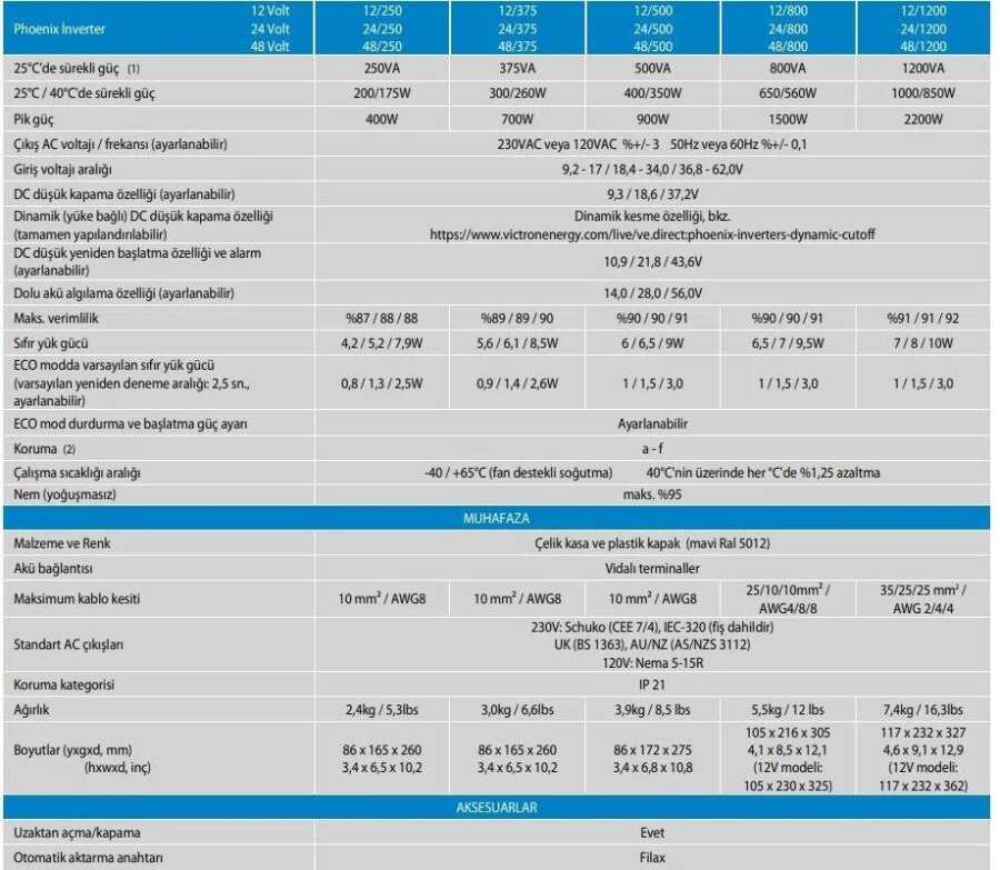 Phoenix Inverter 12/375 VE.Direct'in Özellikleri