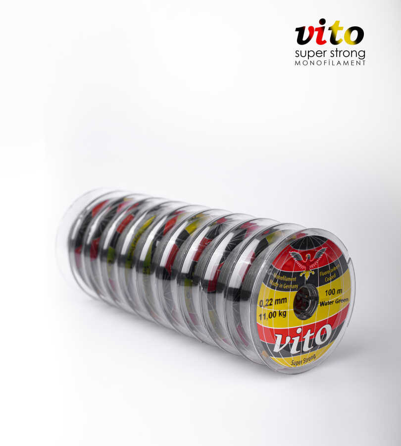Alman mühendisliği ile üretilmiş Vito Süper Strong Monofilament Misina, hem amatör hem profesyonel balıkçılar için yüksek performans sunuyor. Set içerisinde 10 adet yekpare 100 metrelik (Toplamda 1000m) misina bulunur. Fluorocarbon kaplaması sayesinde suda minimum görünürlük sağlarken, balıkların oltadan şüphelenmesini engeller. Homojen yapısı ve düşük hafıza özelliği, kolay düğümlenebilme ve dolaşma riskinin azalması anlamına gelir. Yüksek kopma mukavemeti ve elastikiyet ise büyük balıklarla mücadelede güven verir. Ayrıca bu seri, farklı av ortamlarına uyum sağlayabilmeniz için 3 renk seçeneği ile sunulmaktadır: Şeffaf (Transparan): Doğal görünüm için ideal. Yeşil: Bitki yoğunluğu olan sularda kamuflaj sağlar. Gri: Daha bulanık ve derin sularda maksimum gizlilik sunar.