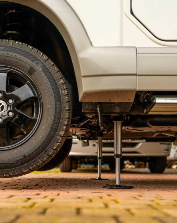 Bu sistem, klasik takoz veya manuel dengeleme yöntemlerine ihtiyaç duymadan saniyeler içinde kurulumu tamamlar. Kamp alanında araç içindeki sallanmayı ortadan kaldırarak konforlu bir yaşam alanı sunar. Aynı zamanda duş, lavabo ve buzdolabı gibi ekipmanların daha verimli çalışmasını sağlar.