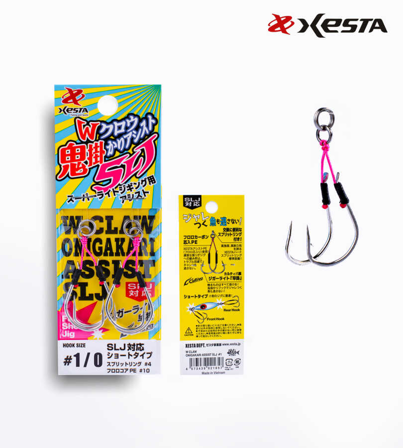 XESTA W CLAW ONIGARI ASSIST SLJ, özellikle Süper Hafif Jigging (SLJ) için tasarlanmış bir asist iğne setidir. Yemlere hafifçe dokunan balıkları bile kaçırmayan özel bir tasarıma sahiptir. Bu SLJ'ye özel asist kancaları, yakalama odaklıdır. 'Cehennem İğnesi' olarak adlandırılan çift kancalı (W kanca) yapısı ve Cultiva'nın ürettiği 'Jigger Light Hayagake' modelinin inanılmaz keskin iğne uçları sayesinde, en ufak dokunuşları bile anında yakalamayı mümkün kılar.
