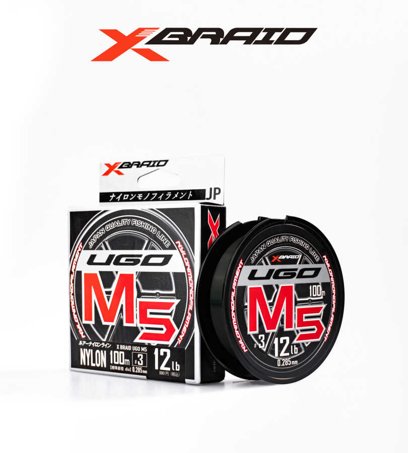 X-BRAID UGO M5 – Premium Nylon Misina UGO M5, X-BRAID’in geliştirdiği özel nylon misina serisidir. W-DUM nylon malzemesi sayesinde su emme oranı çok düşüktür (%0.5). Esnek yapısı (%30 uzama) balıkla mücadelede şok emici etki sağlar. UV koruması ile güneş ışığında dayanıklılığını korur. Pürüzsüz yüzey → kamış ve makara ile uyumlu, sürtünmeyi azaltır. Pumpkin Green renk → su içinde düşük görünürlük sağlar.